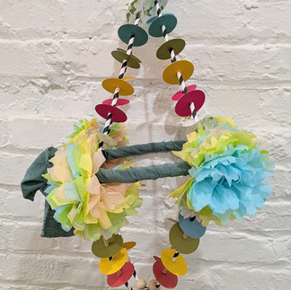 Despite an unexpected freezing rain downpour, guests arrived and were greeted with a hands-on activity: making tissue paper flowers. This simple yet engaging start set the tone for a cozy, collaborative experience. From there, we moved on to beading, assembling the structure, and adding our handcrafted flowers.